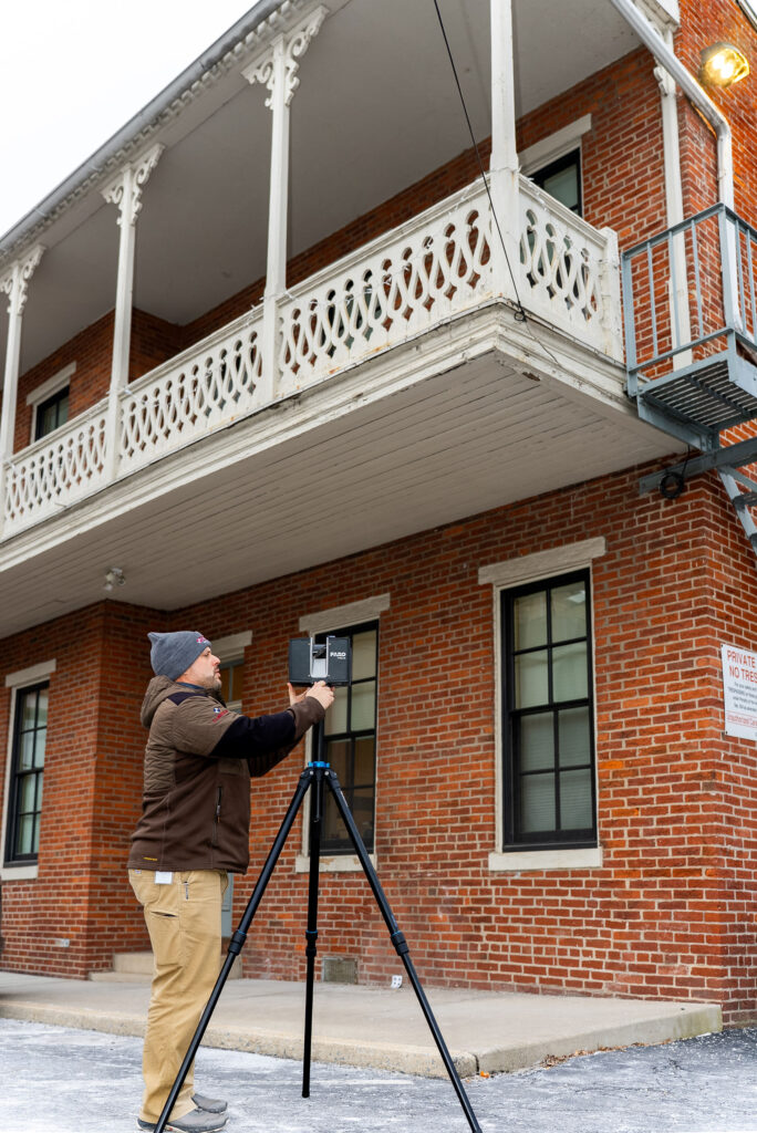 While commercial industrial work is a major endeavor, the needed skillset and tools translate to other project types. The 3D scanning tool has been used to document conditions for unique projects involving historic barns and a historic Gettysburg house that needed to be moved as part of streetscape improvements.